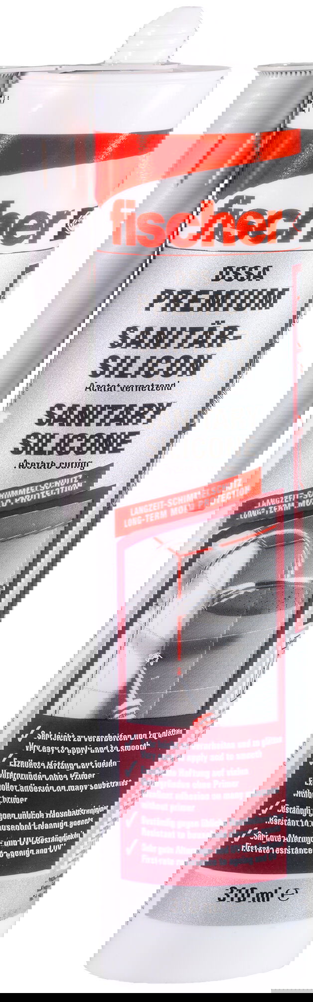 Fischer DSSA SG prémium szaniter szilikon (DE/EN/FR), ezüstszürke, 310 ml