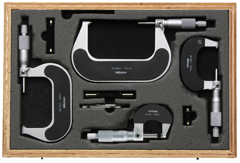 Mitutoyo Külső mikrométer készlet racsnival, 0-100 mm, 0.01 mm, 4 részes (102-911-40)